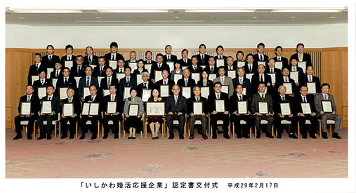公益財団法人いしかわ結婚・子育て支援財団より、社員の出会いと結婚を応援する企業として、「いしかわ婚活応援企業」に認定されました。 詳細はこちら